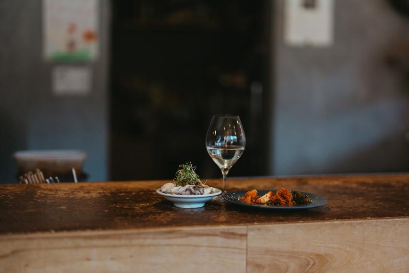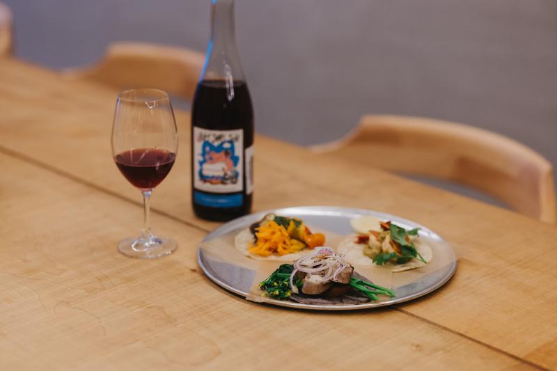 夜のメニューはアラカルトスタイルです。「自分が好きなので、ずっとつくり続けています」と南さんが推すのが、なんとタコス。内容は日替わりで、その時々の食材を織り交ぜるのが南流です。ぜひ気になったナチュラルワインと合わせてみてくださいね。