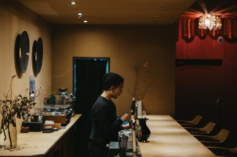 「もともと別の場所でレコードバー〈the HELL〉を営んでいたんです。そちらがちょっと若者寄りのカジュアルな店なので、よりシックな大人の空間をつくりたくて」という店主・深川謙蔵さん。〈TANNEL〉はこのスピーカーありきの店。空間づくりにおいてもスピーカーを起点にすべてを決めていったといいます。