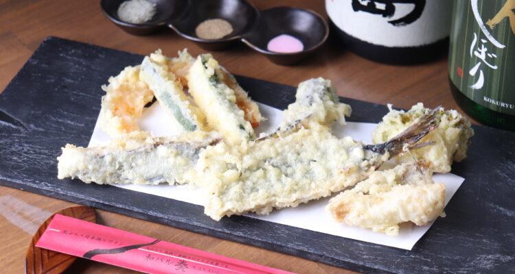 こだわりの天ぷらと、日本酒やワインなど様々なお酒とのマリアージュが楽しめる"和バル"。カウンターもあるので、おひとりさまも利用しやすい。