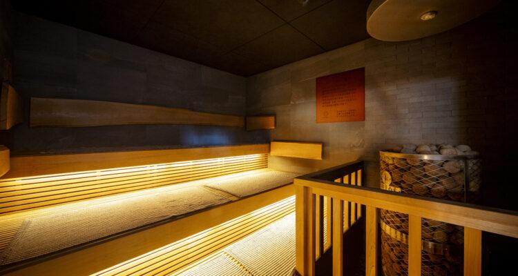 別府湾を一望できる内湯や露天風呂のほか、家族風呂にサウナもある。水風呂には冷ました温泉を用いており、まさに温泉尽くしの湯処。