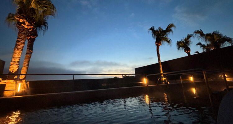 大浴場の大きな窓からは別府湾を一望でき、入浴時間によって異なる景色を眺めることができます。「アルカリ性単純温泉」は掛け流しで、保湿力が高いのが特徴。