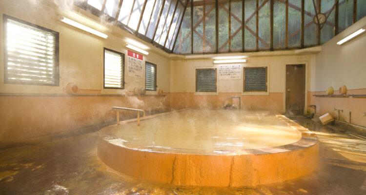 塩分濃度が高く体を芯からあたためてくれる湯は源泉掛け流し。大浴場だけでなく貸切湯が10室あるほか、レストラン、宿泊施設も併設されている。